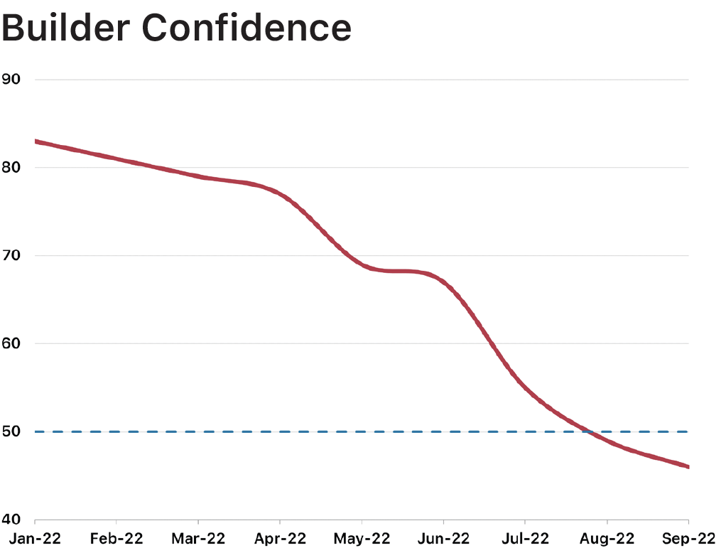 Builder Confidence continued on its downward trajectory through Q3, falling below the baseline level of 50 in August and reaching its lowest level since May 2020 in September. Builders are having to adapt in order to keep sales afloat; 24% of builders reported cutting home prices in September, and 50% of builders have reintroduced incentives ranging from rate buy downs to free amenities and discounted home upgrades.