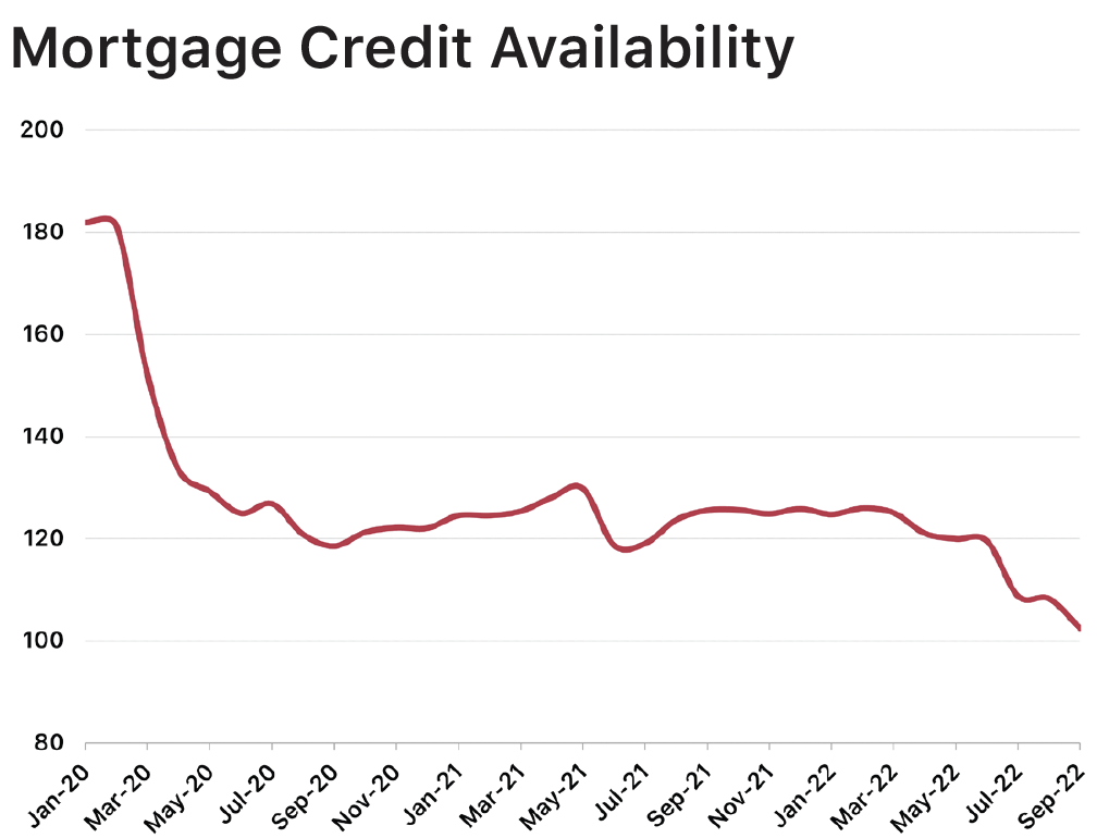 The Mortgage Credit Availability Index, which measures how difficult it is to obtain a mortgage based on current lending standards, accelerated its decline during Q3. The MCAI fell by -14.3% during Q3 to its lowest level since March 2013 and has declined by -18.6% since the beginning of the year. This tightening of the MCAI indicates that lending standards are becoming more robust as lenders prepare for the potential of a recession and the increasing threat of mortgage delinquencies and defaults.